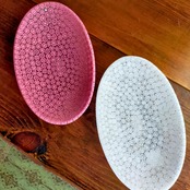 水の都、ガラスの街として有名なイタリア・ベネチアのムラーノ島にある、ベネチアンビーズ界のトップリーダー「Ercole Moretti / エルコーレ モレッティ」社製のオーバル皿(16cm)です。